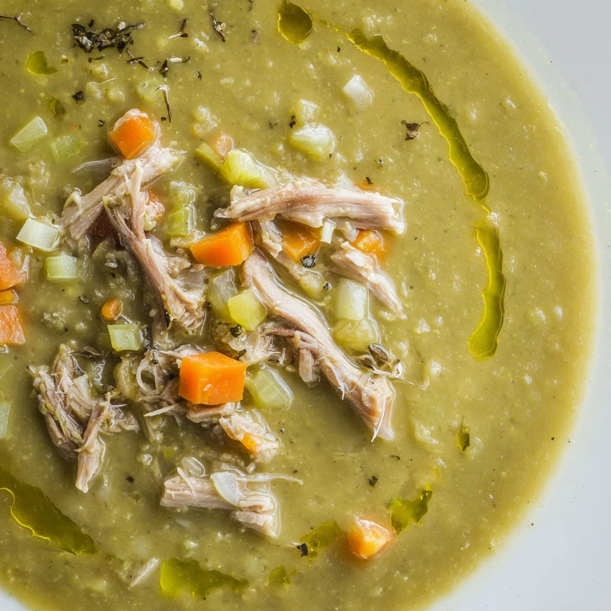 This hearty soup combines green split peas simmered to tenderness with smoky, shredded turkey, enhanced by sautéed onions, carrots, celery, and fragrant herbs. The slow simmer melds flavors into a comforting dish ideal for chilly days, rich in protein and natural warmth. Simple steps ensure a satisfying, nourishing bowl with options to adjust thickness and seasoning. Garnish choices like parsley or olive oil add freshness and depth. Perfect for cozy, wholesome dining.