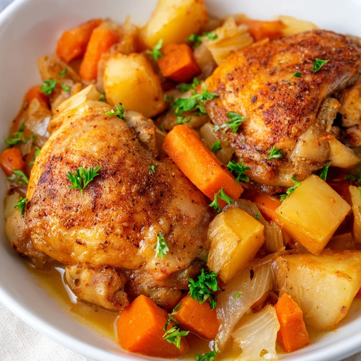 This comforting chicken dinner brings together bone-in thighs, hearty vegetables, and aromatic herbs for a meal that practically cooks itself. The slow cooker transforms simple ingredients into tender, flavorful perfection.