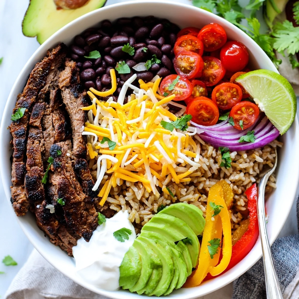 Marinate thinly sliced flank or sirloin in olive oil, lime, soy, garlic and spices for at least 15 minutes. Saute a rainbow of bell peppers and red onion until just tender, then sear the steak quickly to your preferred doneness. Warm black beans and brown rice or quinoa, divide into bowls and top with steak, peppers, avocado, tomatoes, cheese and cilantro. Finish with lime wedges and a dollop of yogurt or crema. Swap cauliflower rice to lower carbs, grill the steak for extra char, and choose gluten-free soy sauce or omit dairy for dietary needs.